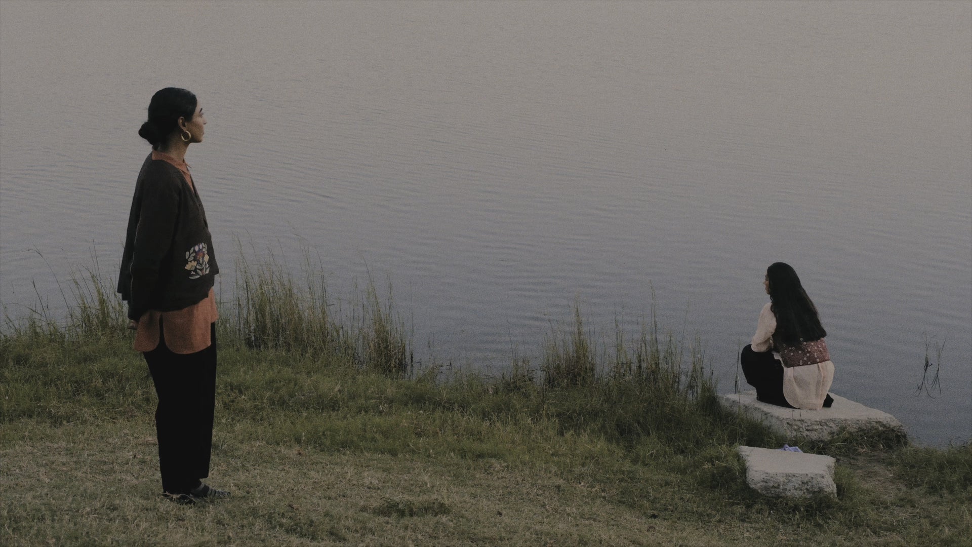 This skirt has a fixed front waistband and an elastic at the back. It borrows its silhouette from vintage school uniforms, with a wide box pleat in front and an A line cut. The wide 4 inch hem has an intricate applique embroidery with subtle zari detailing. The skirt has pockets on either side and belt loops along the waist.